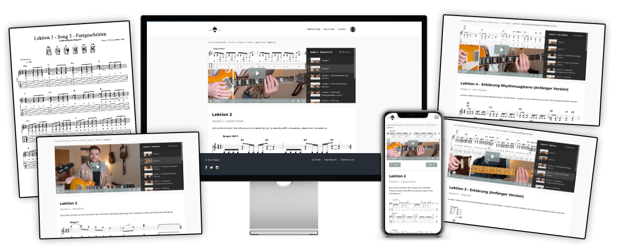 Sondern ein Kurs, in dem du vom ersten Modul an echte Heavy-Metal-Riffs und Songs spielst – und dabei ganz nebenbei verstehst, warum sie funktionieren.